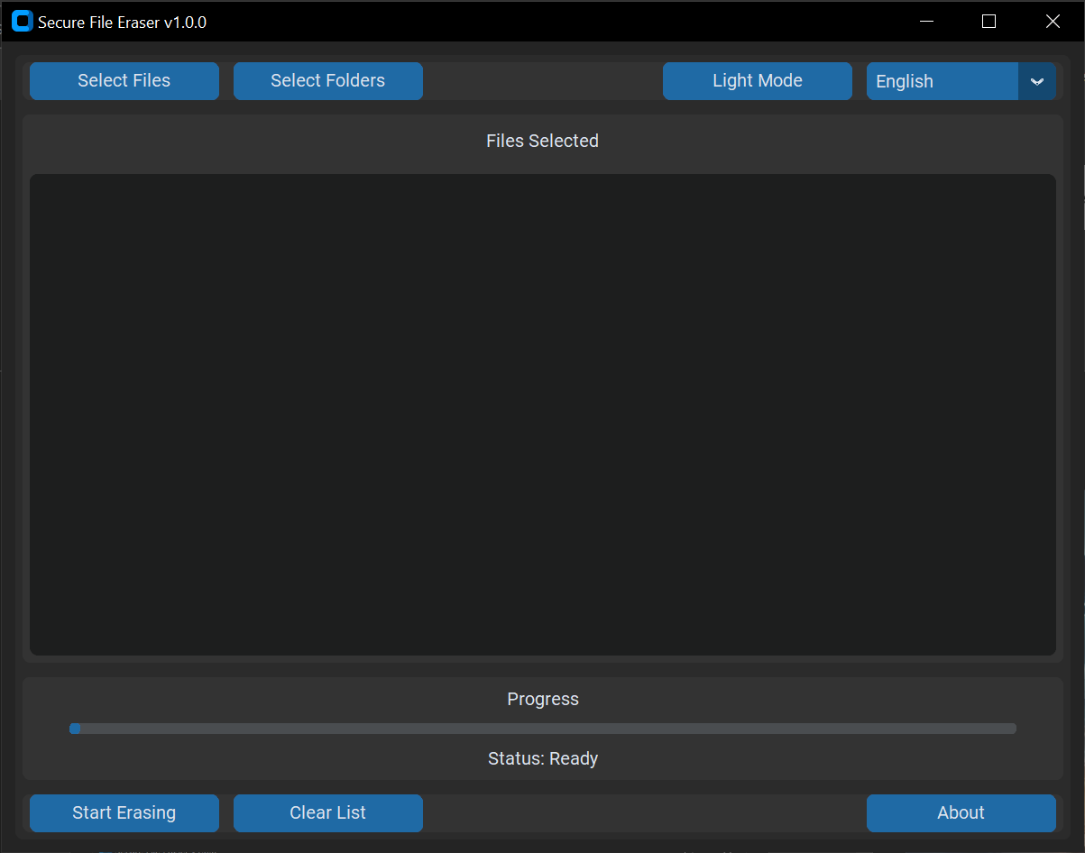 - **User-Friendly Interface**: Built with Tkinter, the application offers an intuitive GUI for easy file selection and erasure, allowing users to navigate the tool effortlessly.